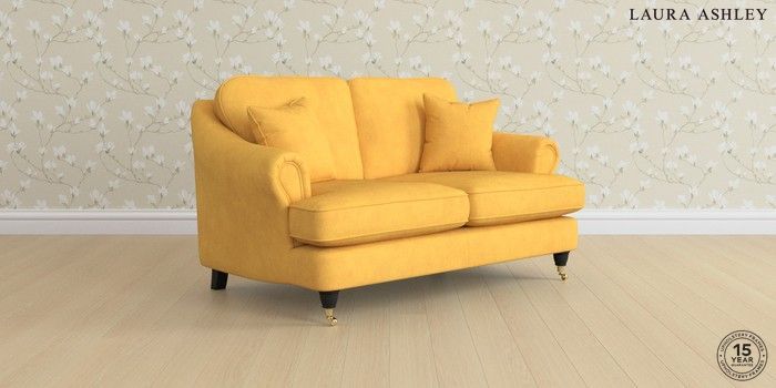 7.0.3 Buy Ambersham by Laura Ashley 2 Seater Small Sofa Bainton Ochre Yellow Low Brass Castor - Black from the Laura Ashley online shop Click here to use our website with more accessibility support, for example screen readers