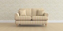 7.0.3 Buy Ambersham by Laura Ashley 2 Seater Small Sofa Kinsham Stripe Ochre Yellow Low Brass Castor - Light Oak from the Laura Ashley online shop Click here to use our website with more accessibility support, for example screen readers