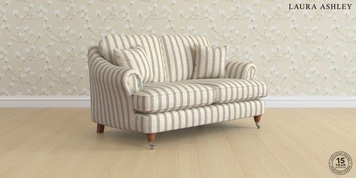 7.0.3 Buy Ambersham by Laura Ashley 2 Seater Small Sofa Kinsham Stripe Seaspray Blue Low Chrome Castor - Teak from the Laura Ashley online shop Click here to use our website with more accessibility support, for example screen readers