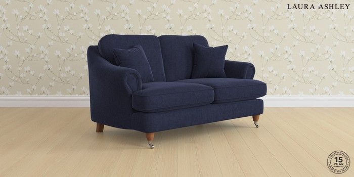7.0.3 Buy Ambersham by Laura Ashley 2 Seater Small Sofa Nantmor Midnight Navy Low Chrome Castor - Teak from the Laura Ashley online shop Click here to use our website with more accessibility support, for example screen readers