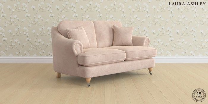 7.0.3 Buy Ambersham by Laura Ashley 2 Seater Small Sofa Orla Chalk Pink Low Chrome Castor - Light Oak from the Laura Ashley online shop Click here to use our website with more accessibility support, for example screen readers