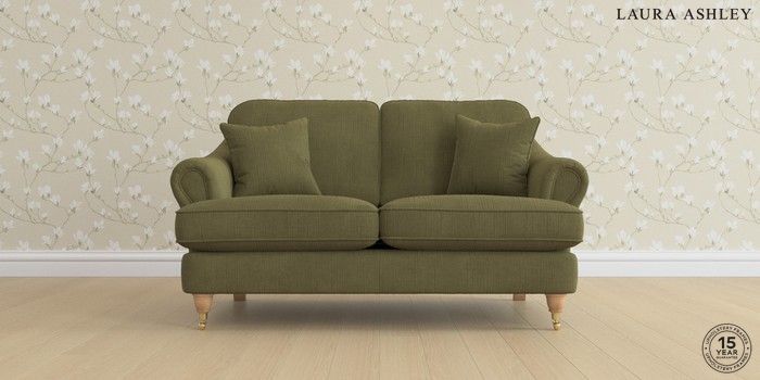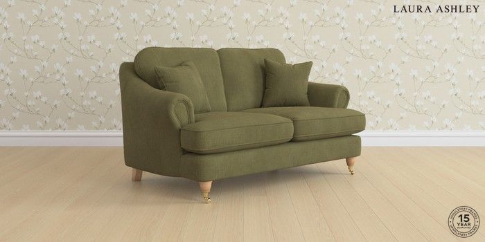 7.0.3 Buy Ambersham by Laura Ashley 2 Seater Small Sofa Sinclair Cord Ivy Green Low Brass Castor - Light Oak from the Laura Ashley online shop Click here to use our website with more accessibility support, for example screen readers