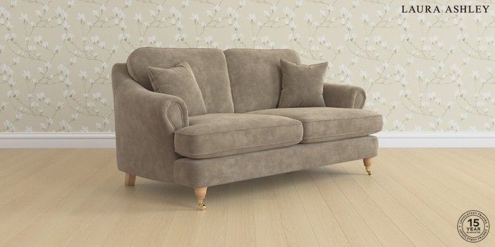 7.0.3 Buy Ambersham by Laura Ashley 3 Seater Small Sofa Alwyn Velvet Truffle Natural Low Brass Castor - Light Oak from the Laura Ashley online shop Click here to use our website with more accessibility support, for example screen readers