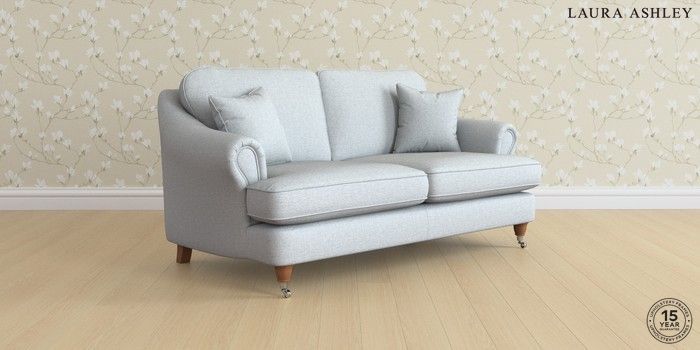 7.0.3 Buy Ambersham by Laura Ashley 3 Seater Small Sofa Anneliese Seaspray Blue Low Chrome Castor - Teak from the Laura Ashley online shop Click here to use our website with more accessibility support, for example screen readers