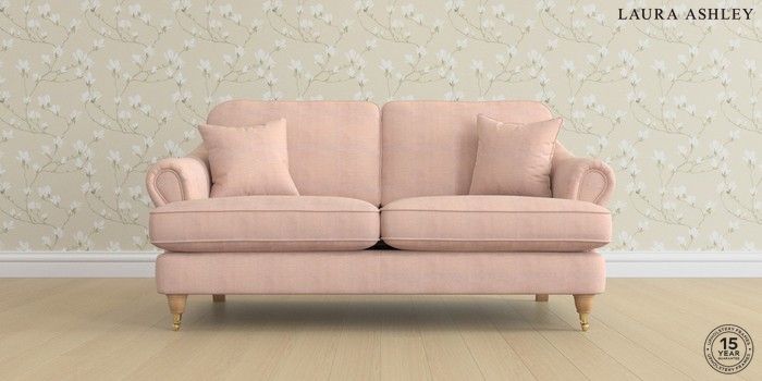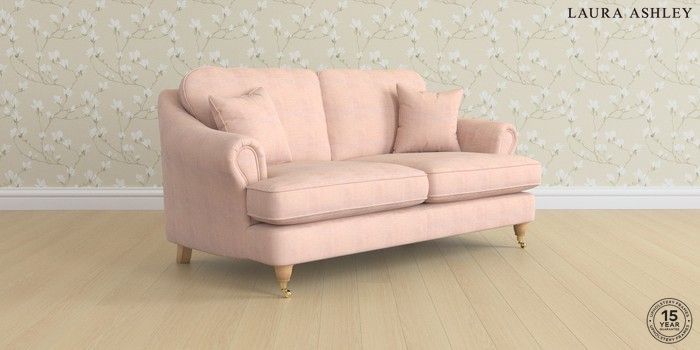 7.0.3 Buy Ambersham by Laura Ashley 3 Seater Small Sofa Edwin Chenille Blush Pink Low Brass Castor - Light Oak from the Laura Ashley online shop Click here to use our website with more accessibility support, for example screen readers