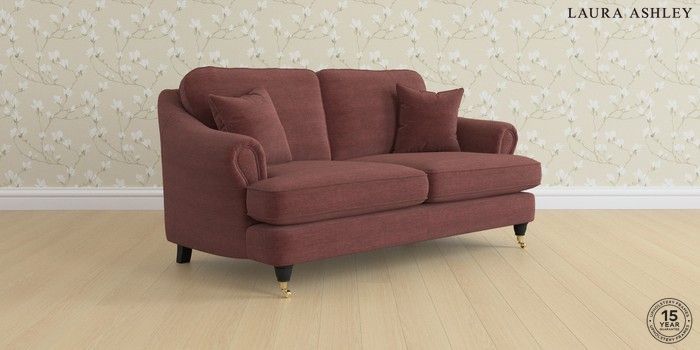 7.0.3 Buy Ambersham by Laura Ashley 3 Seater Small Sofa Edwin Chenille Burgundy Red Low Brass Castor - Black from the Laura Ashley online shop Click here to use our website with more accessibility support, for example screen readers