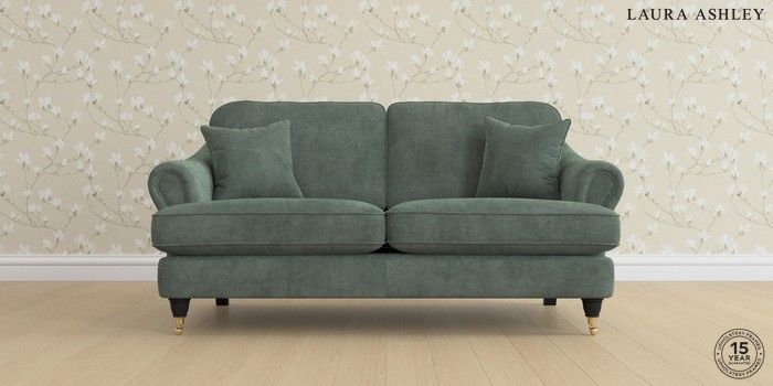 7.0.3 Buy Ambersham by Laura Ashley 3 Seater Small Sofa Nantmor Fern Green Low Brass Castor - Black from the Laura Ashley online shop Click here to use our website with more accessibility support, for example screen readers
