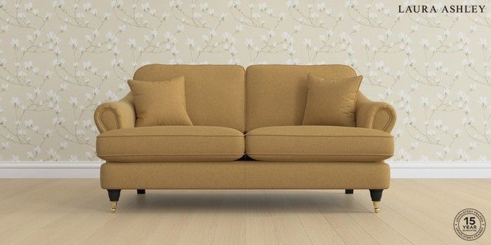 7.0.3 Buy Ambersham by Laura Ashley 3 Seater Small Sofa Peyton Ochre Yellow Low Brass Castor - Black from the Laura Ashley online shop Click here to use our website with more accessibility support, for example screen readers