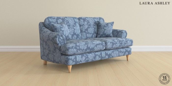 7.0.3 Buy Ambersham by Laura Ashley 3 Seater Small Sofa Tamara Dusky Seaspray Blue Low Turned - Light Oak from the Laura Ashley online shop Click here to use our website with more accessibility support, for example screen readers