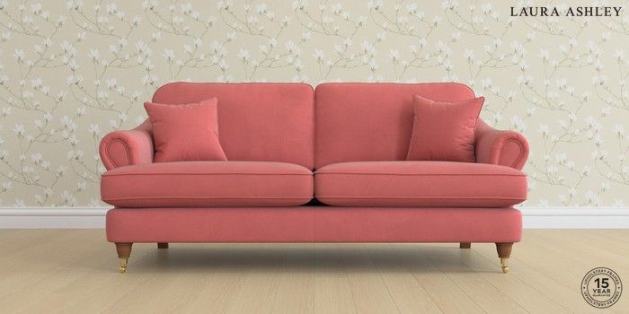 7.0.3 Buy Ambersham by Laura Ashley 3 Seater Sofa Ailsworth Old Rose Pink Low Brass Castor - Teak from the Laura Ashley online shop Click here to use our website with more accessibility support, for example screen readers