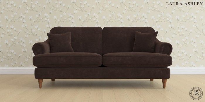 7.0.3 Buy Ambersham by Laura Ashley 3 Seater Sofa Alwyn Velvet Chocolate Brown Low Turned - Teak from the Laura Ashley online shop Click here to use our website with more accessibility support, for example screen readers