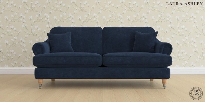 7.0.3 Buy Ambersham by Laura Ashley 3 Seater Sofa Alwyn Velvet Midnight Navy Low Chrome Castor - Light Oak from the Laura Ashley online shop Click here to use our website with more accessibility support, for example screen readers