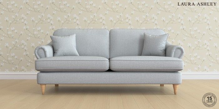 7.0.3 Buy Ambersham by Laura Ashley 3 Seater Sofa Anneliese Seaspray Blue Low Turned - Light Oak from the Laura Ashley online shop Click here to use our website with more accessibility support, for example screen readers