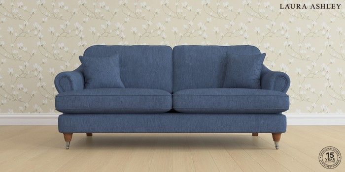 7.0.3 Buy Ambersham by Laura Ashley 3 Seater Sofa Bainton Midnight Navy Low Chrome Castor - Teak from the Laura Ashley online shop Click here to use our website with more accessibility support, for example screen readers