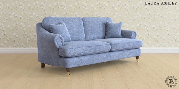 7.0.3 Buy Ambersham by Laura Ashley 3 Seater Sofa Edwin Chenille Seaspray Blue Low Brass Castor - Chestnut from the Laura Ashley online shop Click here to use our website with more accessibility support, for example screen readers
