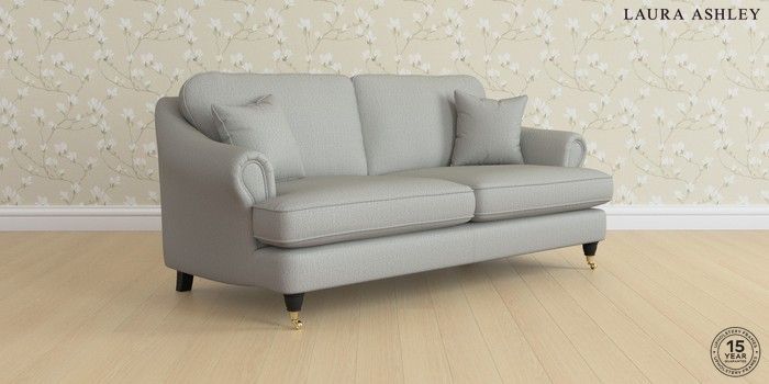 7.0.3 Buy Ambersham by Laura Ashley 3 Seater Sofa Edwin Herringbone Pale Steel Grey Low Brass Castor - Black from the Laura Ashley online shop Click here to use our website with more accessibility support, for example screen readers