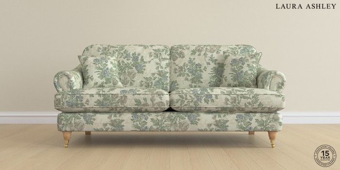 7.0.3 Buy Ambersham by Laura Ashley 3 Seater Sofa Ellerby Seaspray Blue Low Brass Castor - Light Oak from the Laura Ashley online shop Click here to use our website with more accessibility support, for example screen readers