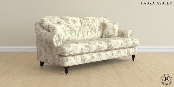 7.0.3 Buy Ambersham by Laura Ashley 3 Seater Sofa Gosford Weave Sage Green Low Turned - Black from the Laura Ashley online shop Click here to use our website with more accessibility support, for example screen readers