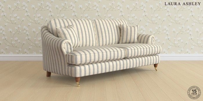 7.0.3 Buy Ambersham by Laura Ashley 3 Seater Sofa Kinsham Stripe Seaspray Blue Low Brass Castor - Teak from the Laura Ashley online shop Click here to use our website with more accessibility support, for example screen readers
