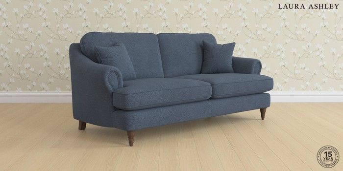 7.0.3 Buy Ambersham by Laura Ashley 3 Seater Sofa Lundar Chenille Navy Blue Low Turned - Chestnut from the Laura Ashley online shop Click here to use our website with more accessibility support, for example screen readers