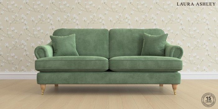 7.0.3 Buy Ambersham by Laura Ashley 3 Seater Sofa Orla Pale Hedgerow Green Low Brass Castor - Light Oak from the Laura Ashley online shop Click here to use our website with more accessibility support, for example screen readers