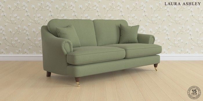 7.0.3 Buy Ambersham by Laura Ashley 3 Seater Sofa Peyton Hedgerow Green Low Brass Castor - Chestnut from the Laura Ashley online shop Click here to use our website with more accessibility support, for example screen readers