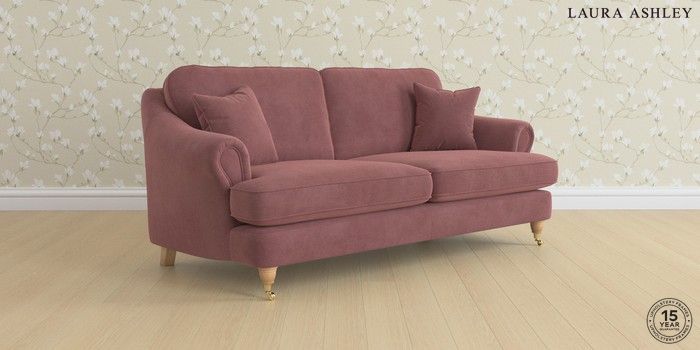 7.0.3 Buy Ambersham by Laura Ashley 3 Seater Sofa Peyton Plum Purple Low Brass Castor - Light Oak from the Laura Ashley online shop Click here to use our website with more accessibility support, for example screen readers