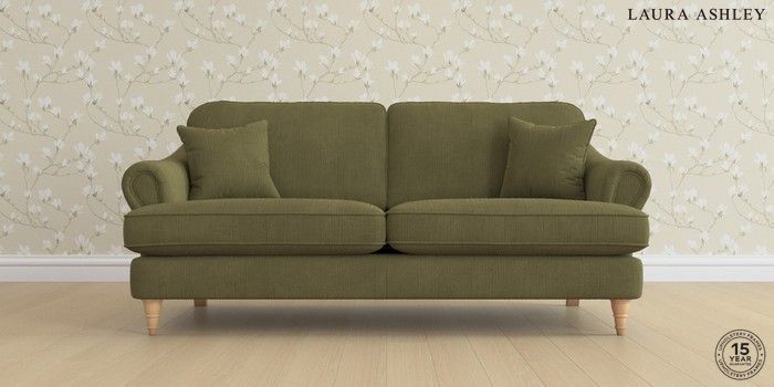 7.0.3 Buy Ambersham by Laura Ashley 3 Seater Sofa Sinclair Cord Ivy Green Low Turned - Light Oak from the Laura Ashley online shop Click here to use our website with more accessibility support, for example screen readers