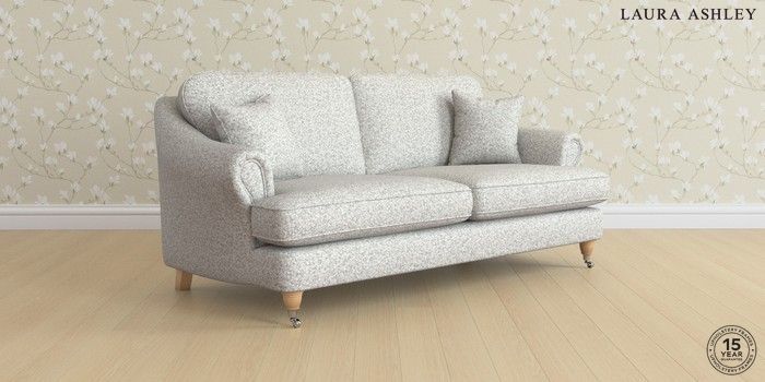 7.0.3 Buy Ambersham by Laura Ashley 3 Seater Sofa Tichwell Steel Grey Low Chrome Castor - Light Oak from the Laura Ashley online shop Click here to use our website with more accessibility support, for example screen readers
