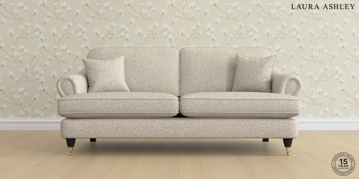 7.0.3 Buy Ambersham by Laura Ashley 3 Seater Sofa Tichwell Stone Natural Low Brass Castor - Black from the Laura Ashley online shop Click here to use our website with more accessibility support, for example screen readers