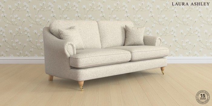 7.0.3 Buy Ambersham by Laura Ashley 3 Seater Sofa Tichwell Stone Natural Low Brass Castor - Light Oak from the Laura Ashley online shop Click here to use our website with more accessibility support, for example screen readers