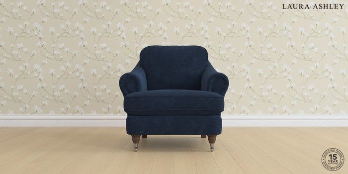 7.0.3 Buy Ambersham by Laura Ashley Armchair Alwyn Velvet Midnight Navy Low Chrome Castor - Chestnut from the Laura Ashley online shop Click here to use our website with more accessibility support, for example screen readers
