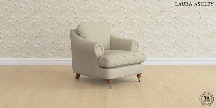 7.0.3 Buy Ambersham by Laura Ashley Armchair Anneliese Natural Low Chrome Castor - Teak from the Laura Ashley online shop Click here to use our website with more accessibility support, for example screen readers