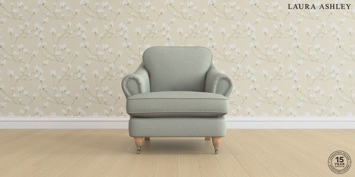 7.0.3 Buy Ambersham by Laura Ashley Armchair Bainton Sage Green Low Chrome Castor - Light Oak from the Laura Ashley online shop Click here to use our website with more accessibility support, for example screen readers
