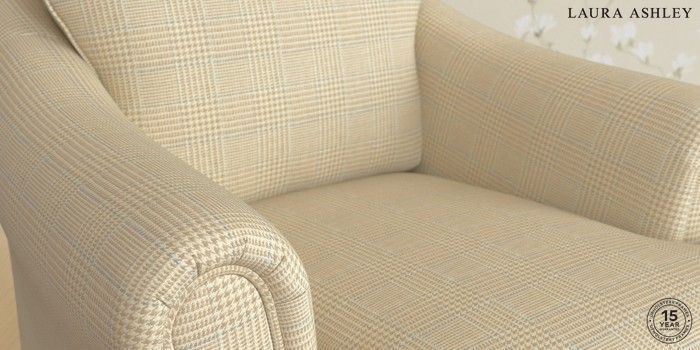 7.0.3 Buy Ambersham by Laura Ashley Armchair Birchgrove Check Oatmeal Natural Low Brass Castor - Chestnut from the Laura Ashley online shop Click here to use our website with more accessibility support, for example screen readers
