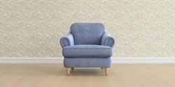 7.0.3 Buy Ambersham by Laura Ashley Armchair Edwin Chenille Seaspray Blue Low Turned - Light Oak from the Laura Ashley online shop Click here to use our website with more accessibility support, for example screen readers