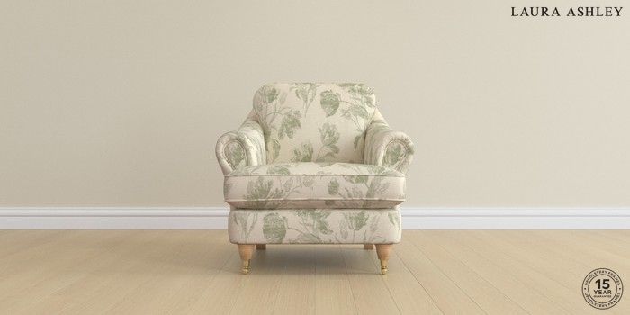 7.0.3 Buy Ambersham by Laura Ashley Armchair Gosford Weave Sage Green Low Brass Castor - Light Oak from the Laura Ashley online shop Click here to use our website with more accessibility support, for example screen readers