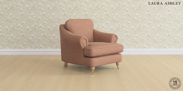 7.0.3 Buy Ambersham by Laura Ashley Armchair Kinsham Rust Orange Low Brass Castor - Light Oak from the Laura Ashley online shop Click here to use our website with more accessibility support, for example screen readers