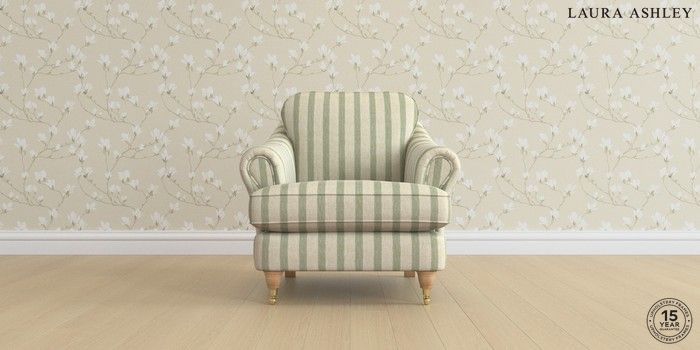 7.0.3 Buy Ambersham by Laura Ashley Armchair Kinsham Stripe Hedgerow Green Low Brass Castor - Light Oak from the Laura Ashley online shop Click here to use our website with more accessibility support, for example screen readers
