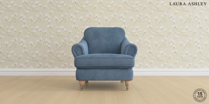 7.0.3 Buy Ambersham by Laura Ashley Armchair Orla Seaspray Blue Low Chrome Castor - Light Oak from the Laura Ashley online shop Click here to use our website with more accessibility support, for example screen readers