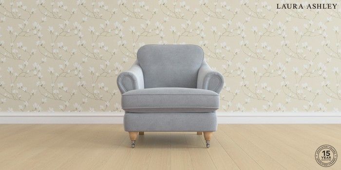 7.0.3 Buy Ambersham by Laura Ashley Armchair Peyton Powder Blue Low Chrome Castor - Light Oak from the Laura Ashley online shop Click here to use our website with more accessibility support, for example screen readers