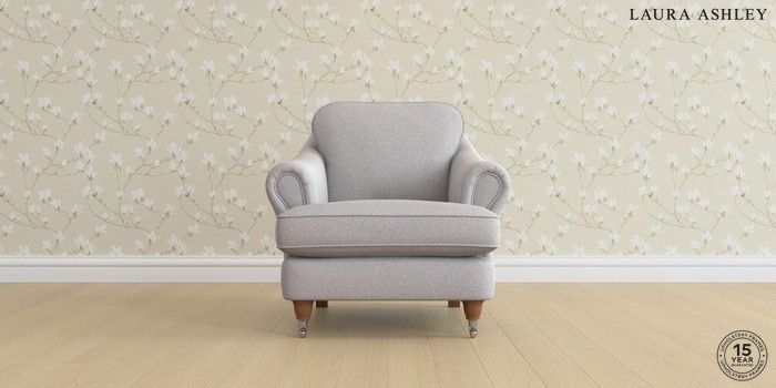 7.0.3 Buy Ambersham by Laura Ashley Armchair Wooton Pale Steel Grey Low Chrome Castor - Teak from the Laura Ashley online shop Click here to use our website with more accessibility support, for example screen readers