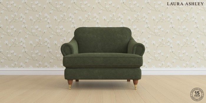 7.0.3 Buy Ambersham by Laura Ashley Snuggle Alwyn Velvet Ivy Green Low Brass Castor - Teak from the Laura Ashley online shop Click here to use our website with more accessibility support, for example screen readers
