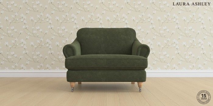 7.0.3 Buy Ambersham by Laura Ashley Snuggle Alwyn Velvet Ivy Green Low Chrome Castor - Light Oak from the Laura Ashley online shop Click here to use our website with more accessibility support, for example screen readers