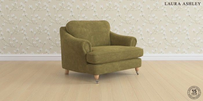 7.0.3 Buy Ambersham by Laura Ashley Snuggle Alwyn Velvet Olive Green Low Chrome Castor - Light Oak from the Laura Ashley online shop Click here to use our website with more accessibility support, for example screen readers
