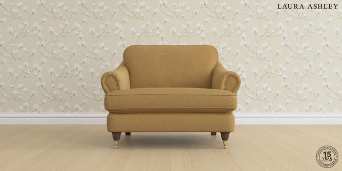 7.0.3 Buy Ambersham by Laura Ashley Snuggle Peyton Ochre Yellow Low Brass Castor - Chestnut from the Laura Ashley online shop Click here to use our website with more accessibility support, for example screen readers