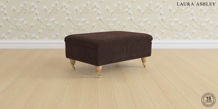 7.0.3 Buy Ambersham by Laura Ashley Storage Footstool Alwyn Velvet Chocolate Brown Low Brass Castor - Light Oak from the Laura Ashley online shop Click here to use our website with more accessibility support, for example screen readers