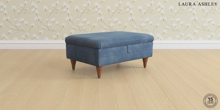 7.0.3 Buy Ambersham by Laura Ashley Storage Footstool Edwin Chenille Seaspray Blue Low Turned - Teak from the Laura Ashley online shop Click here to use our website with more accessibility support, for example screen readers