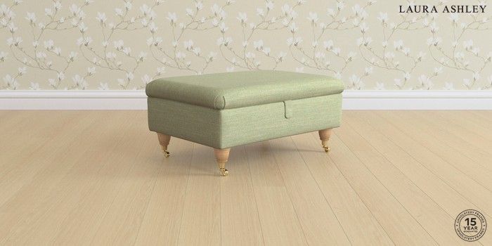 7.0.3 Buy Ambersham by Laura Ashley Storage Footstool Kinsham Hedgerow Green Low Brass Castor - Light Oak from the Laura Ashley online shop Click here to use our website with more accessibility support, for example screen readers