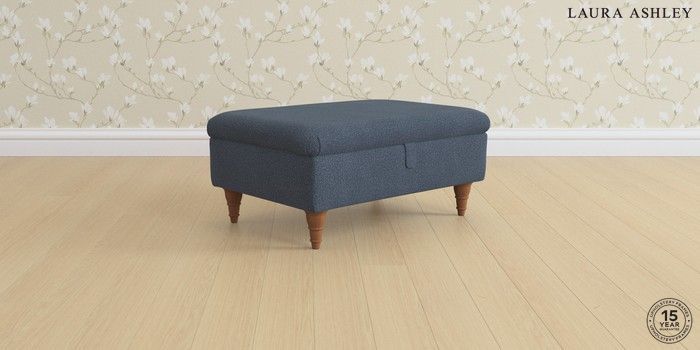 7.0.3 Buy Ambersham by Laura Ashley Storage Footstool Lundar Chenille Navy Blue Low Turned - Teak from the Laura Ashley online shop Click here to use our website with more accessibility support, for example screen readers